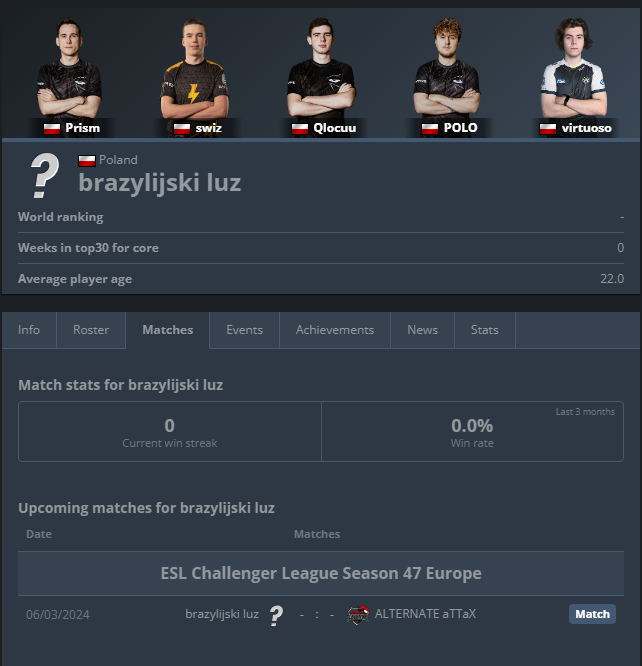 In 2 days we starting our journey in ESL Challenger League as 🇵🇱 brazylijski luz vs 🇩🇪 @ATNattax 🚨It means we are looking for organization that we could proudly represent in upcoming tournaments Contact me via DM or STEAM. Retweets appreciated 🫶 Wish us luck 🫡