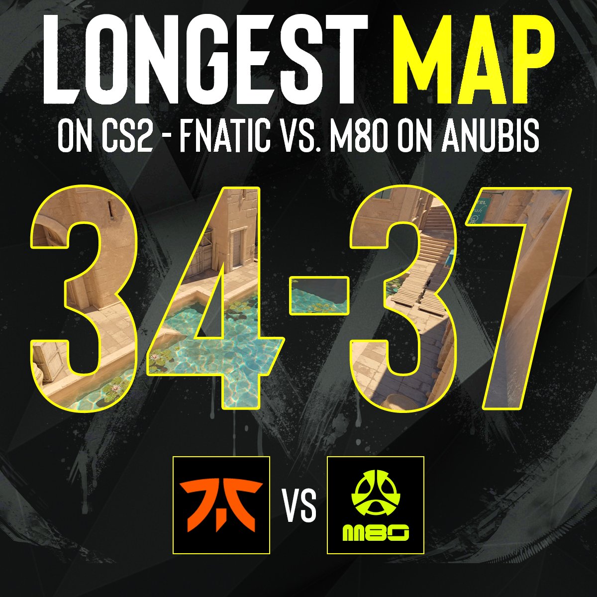 THE LONGEST MAP EVER PLAYED ON CS2! 😳 71 SEVENTY ONE rounds were played between @FNATIC & @M80gg on Anubis at #ESLProLeague XX