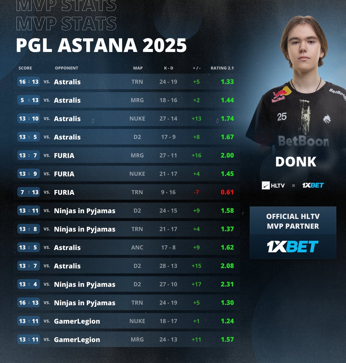 To musiał być on 😏 donk jest MVP HLTV i @1xBet_Esports za PGL Astana 2025