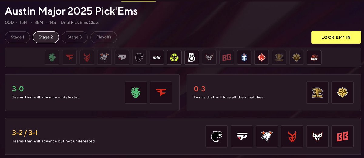 Stage 1 completed 💎 This is what a diamond coin looks like, part 2! 3-0: Falcons 🇪🇺 FaZe 🇪🇺 3-1/3-2: Furia 🇧🇷 paiN 🇧🇷 VP 🇷🇺 3DMAX 🇫🇷 Heroic 🇪🇺 BetBoom 🇷🇺 0-3: Lynn Vision 🇨🇳 Legacy 🇧🇷 Yours?
