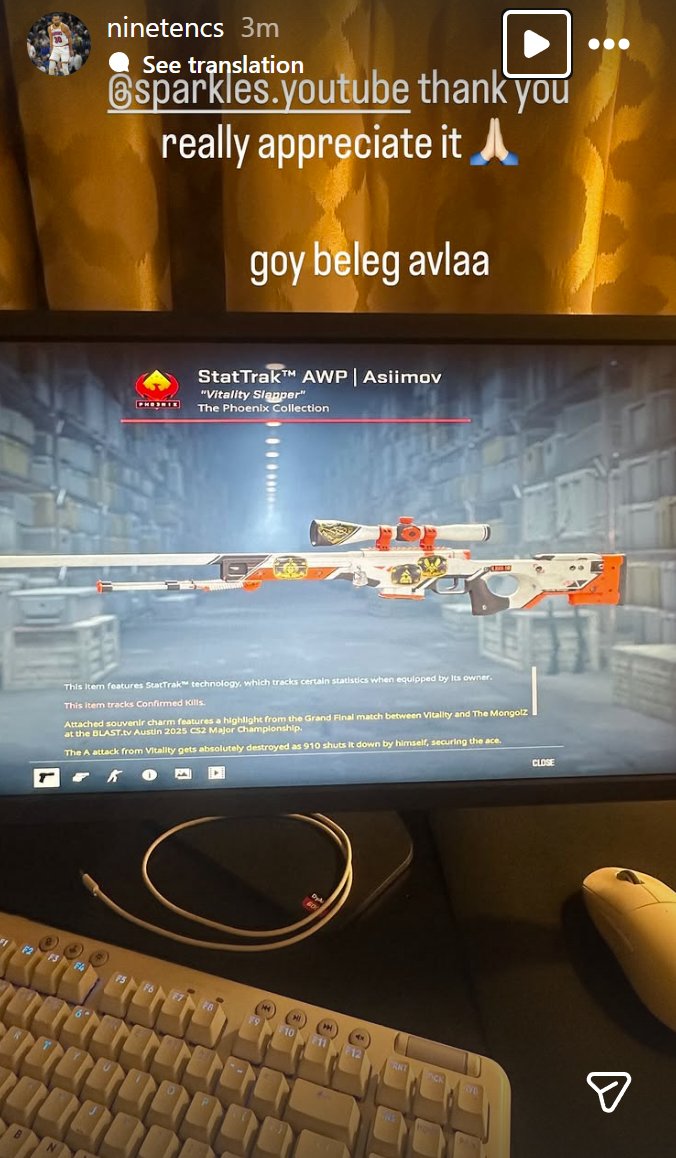 910 otrzymał AWP Asiimova o nazwie "Vitality Slapper" od CS YouTubera Sparkles🔥👀
