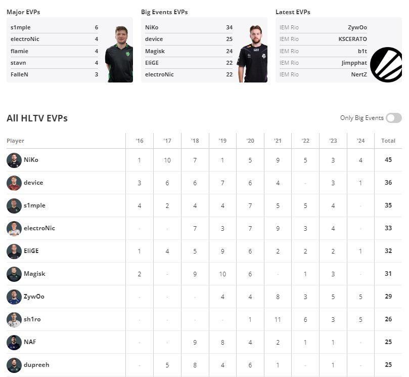 HLTV przyznało za turniej również nagrody EVP (Exceptionally Valuable Player). Na liście nie pojawili się m.in. Mathieu "ZywOo" Herbaut, Sergey "Ax1Le" Rykhtorov, Mareks "YEKINDAR" Gaļinskis, a także żaden z graczy FaZe.
