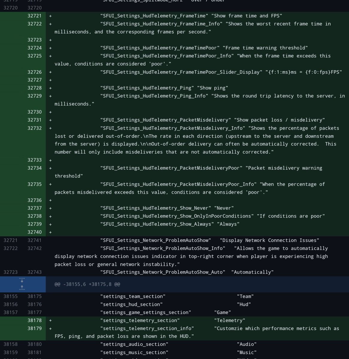 - Dodano element diagnostyczny wydajności HUD, który można skonfigurować w menu ustawień gry ("Telemetria").