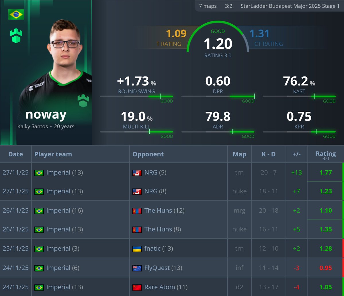 Jak podaje HLTV.org, miejsce posadzonego niedawno na ławce rezerwowych w Imperial JOTA'y ma zająć 18-letni talent - Kaiky "noway" Santos. Brazylijczyk jak do tej pory rozegrał zaledwie 11 map na HLTV, jednak niedawno pochwalił go sam FalleN.